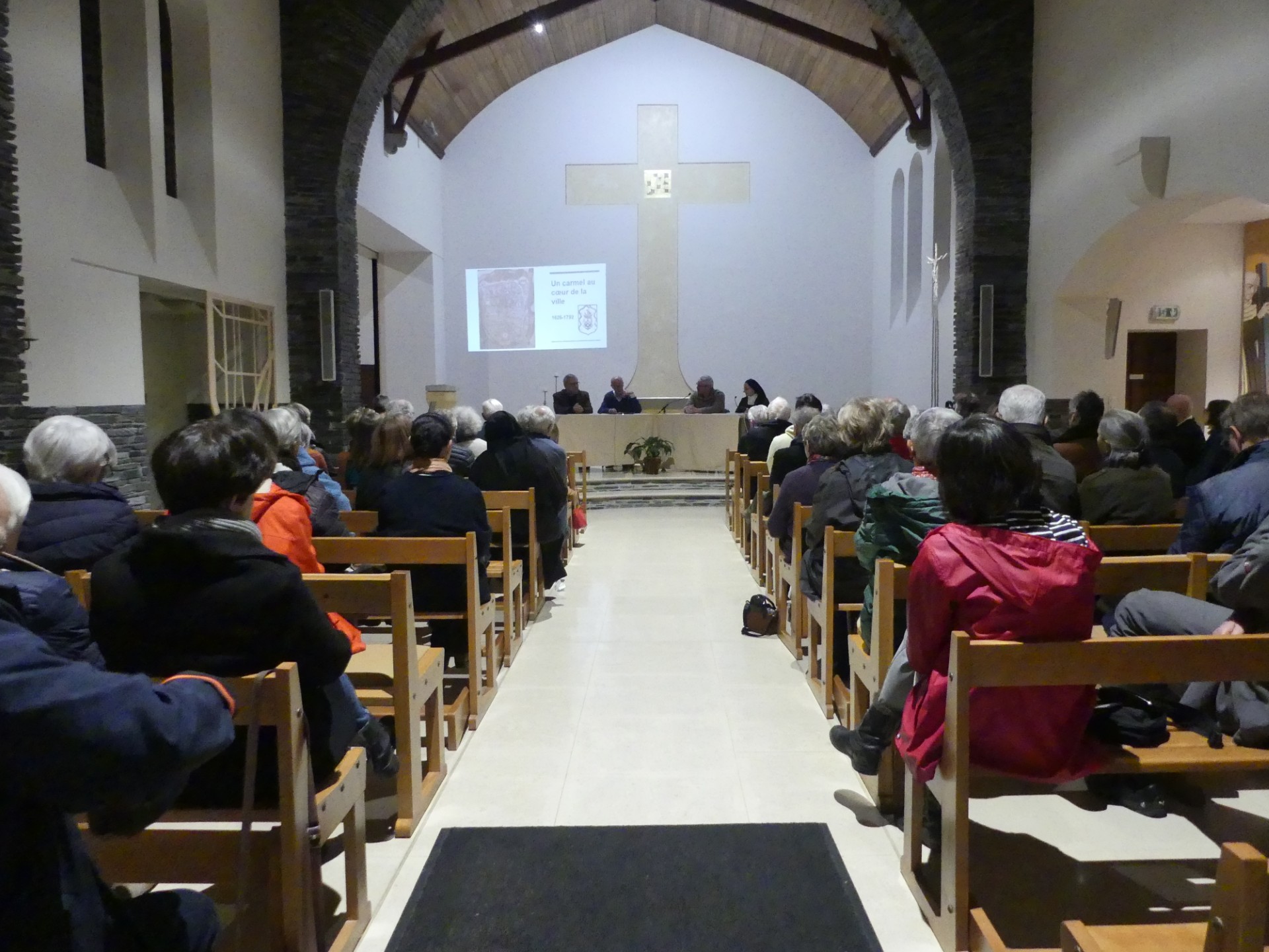 La chapelle des carmélites angevines fait salle comble : accueillies par la prieure, sœur Charlotte-Marie, 80 personnes assistent à la rencontre intitulée « Un Carmel dans les soubresauts de l’histoire ». Trois intervenants y apportent leur savoir et leur expérience : Yann Gourtay, historien et archiviste de carmels ; François Comte, conservateur en chef du patrimoine aux Musées d’Angers et natif… de Lisieux ; sœur Agnès-Marie, archiviste et maîtresse des novices du monastère angevin dont elle a été prieure pendant neuf ans.