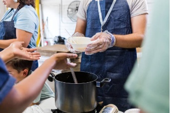 Une cinquantaine de bénévoles assure ce service, avec un roulement d’une équipe par dimanche. Les tables sont préparées la veille au soir, et le pain et les viennoiseries sont collectés le matin dans les boulangeries avoisinantes. « Nous débutons à 7h30. Chaque dimanche, il passe entre 80 et 90 personnes. Tandis que des bénévoles s’activent en cuisine, les autres accueillent les gens, il y a des familles, avec des jeunes enfants… Pour certains, ces petits-déjeuners sont devenus un repère »