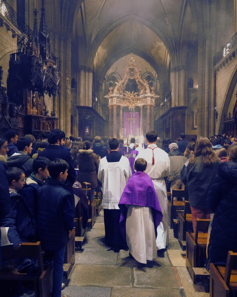 1400 personnes se sont rassemblées à la cathédrale pour le mercredi des Cendres. Au cœur des vacances scolaires et malgré les inondations angevines, c’est une assemblée fournie qui a été accueillie par les équipes paroissiales qui ont su guider chacun vers une place dans la cathédrale comble.