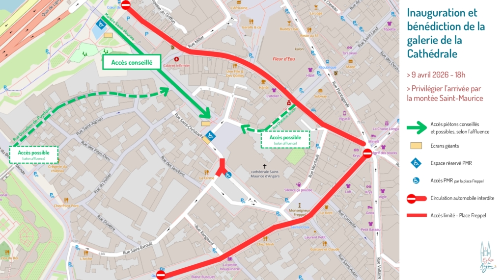 Toutes les informations ici ! Jeudi 9 avril 2026, à partir de 18h, vous êtes invités à participer à l’inauguration et à la bénédiction de la galerie de la cathédrale d’Angers.
