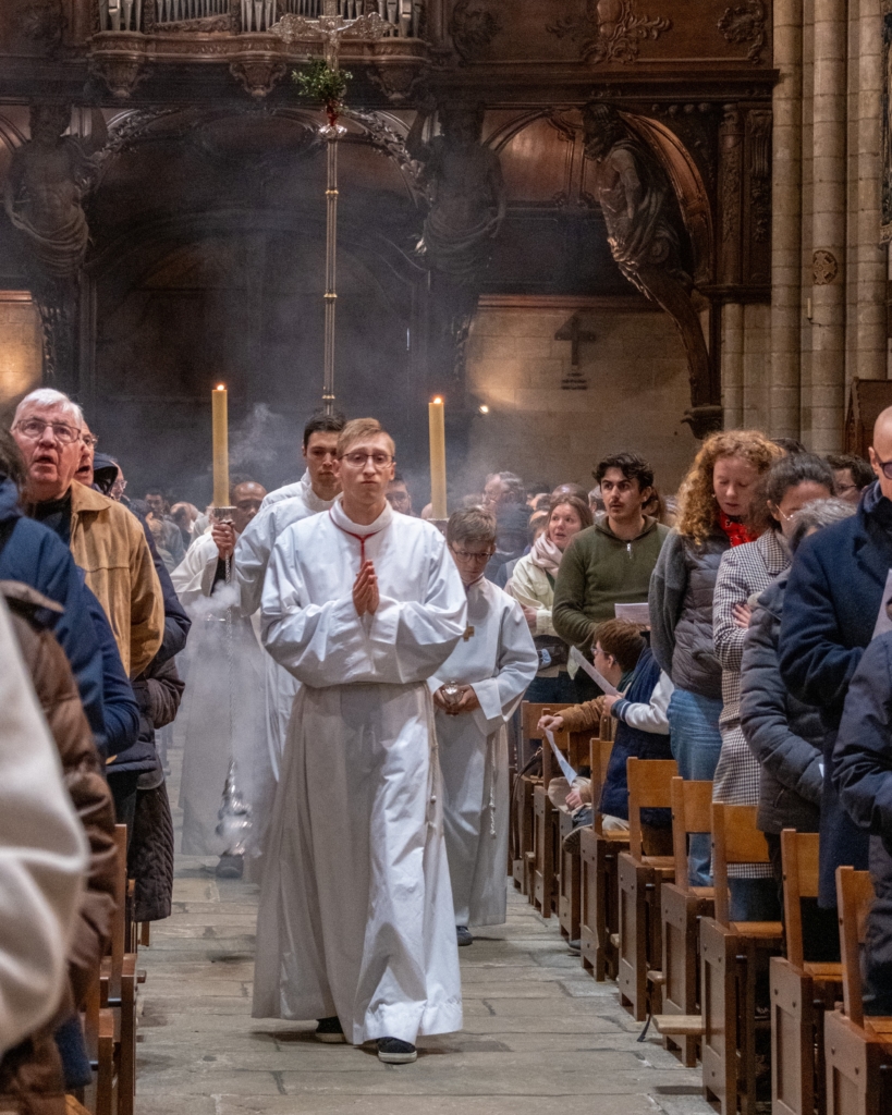 Le mercredi 1er avril 2026, la messe chrismale a été célébrée à la cathédrale Saint-Maurice d’Angers. Elle était présidée par Monseigneur Emmanuel Delmas, évêque d’Angers, entouré des prêtres, diacres et fidèles du diocèse d’Angers.