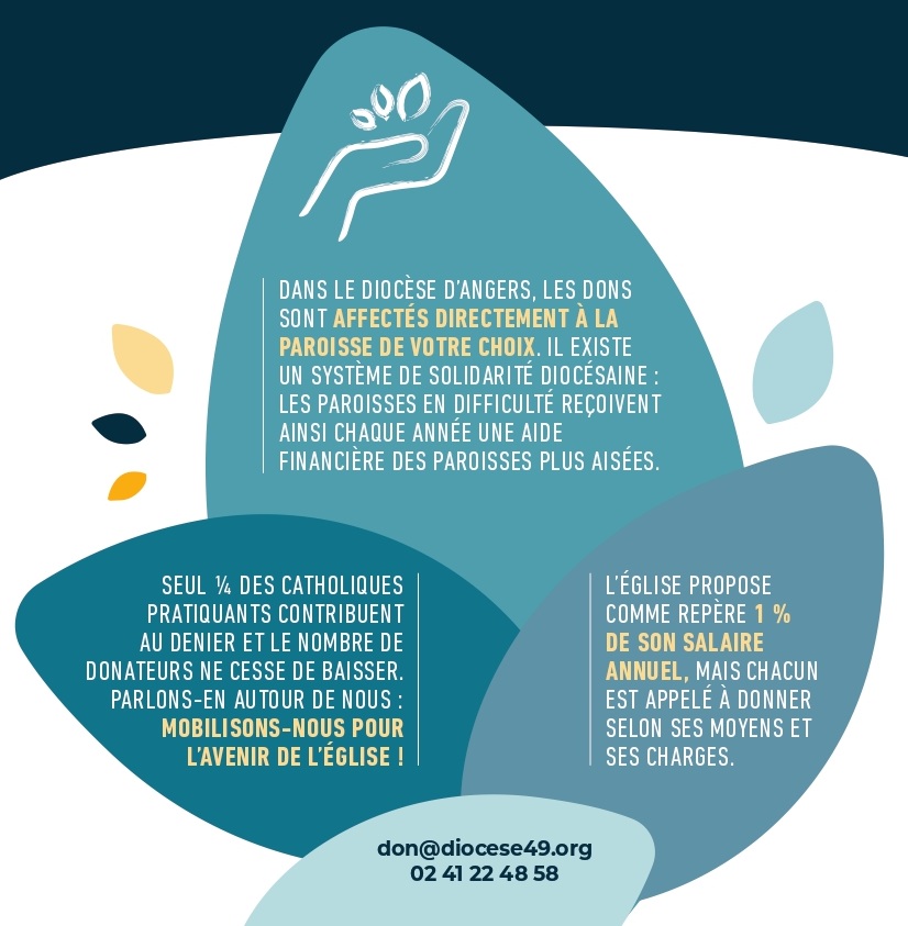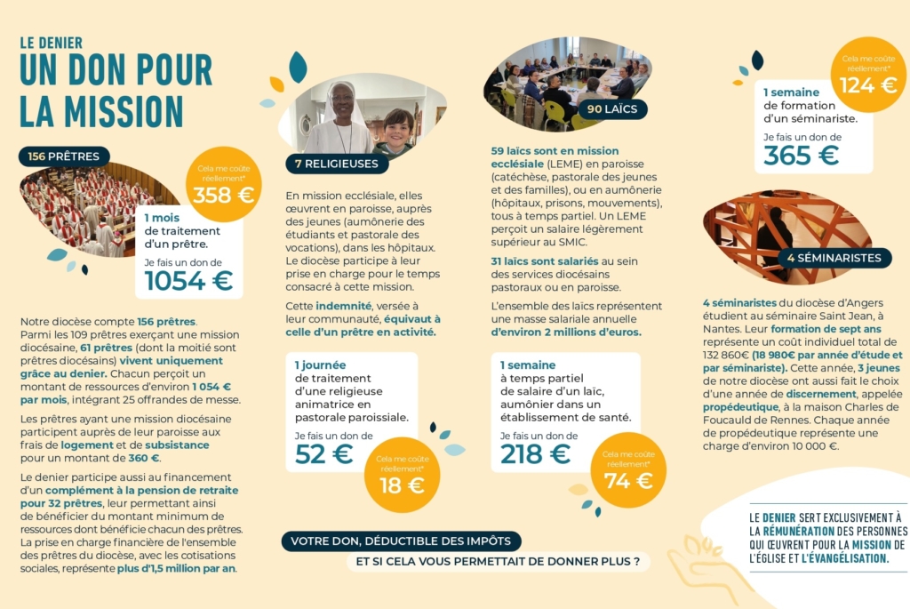Depuis 2021, dans le diocèse d’Angers, le denier est collecté par les paroisses qui rémunèrent directement les prêtres, religieuses et/ou laïcs qui œuvrent sur leur territoire.