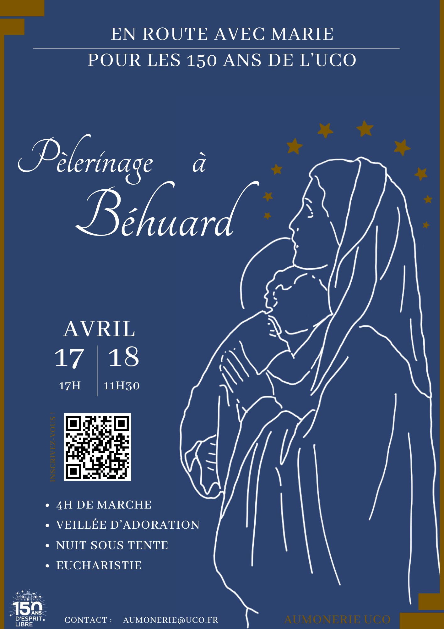 Pour célébrer les 150 ans de l’UCO, son aumônerie vous invite à une marche de 16km depuis la Vierge du Palais Universitaire de l’UCO jusqu’à la Vierge de Béhuard, les 17 et 18 avril 2026 !