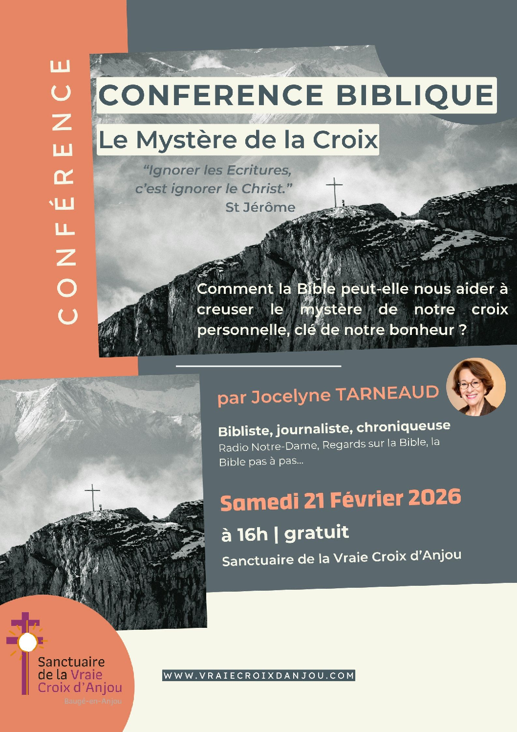 Comment la Bible peut-elle nous aider à creuser le mystère de notre croix personnelle, clé de notre bonheur ? Conférencière : madame Jocelyne Tarneaud, journaliste, bibliste, chroniqueuse sur Radio Notre Dame.