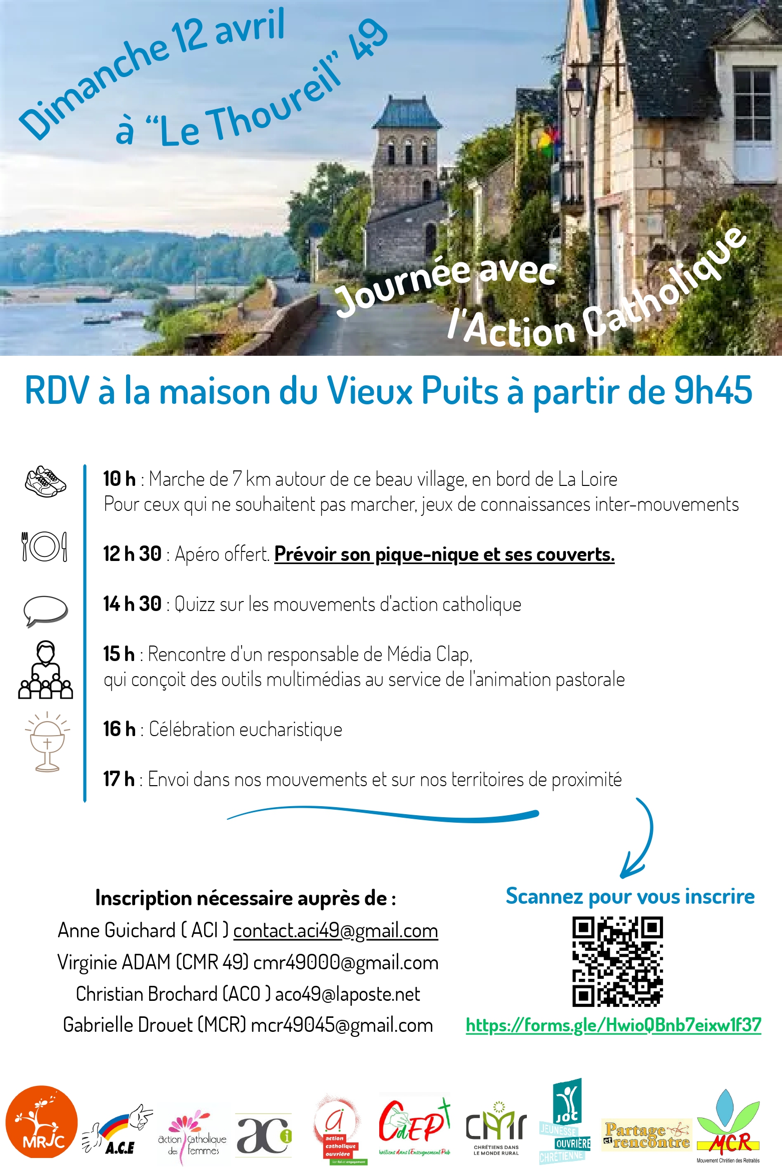 Les mouvements de l’action catholique en Anjou vous invitent à la Journée de l’Action Catholique, le dimanche 12 avril au Thoureil. Journée ouverte à tous.