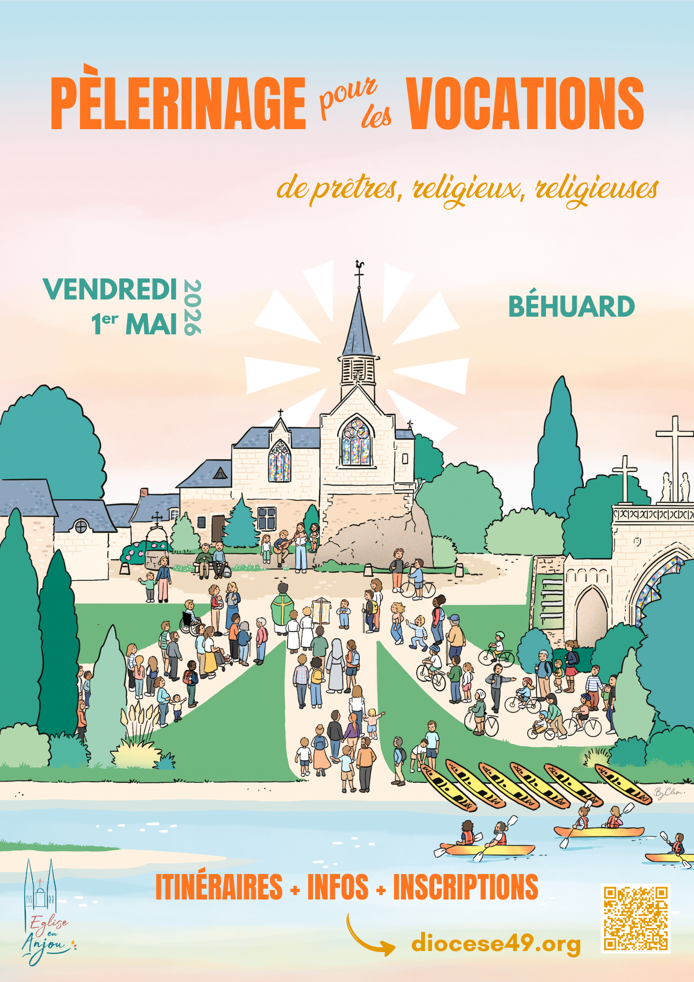 À l’invitation de notre évêque, Monseigneur Delmas, venons vivre une journée de prière pour les vocations des prêtres et des religieux et religieuses pour notre diocèse le vendredi 1er mai 2026 à Béhuard.