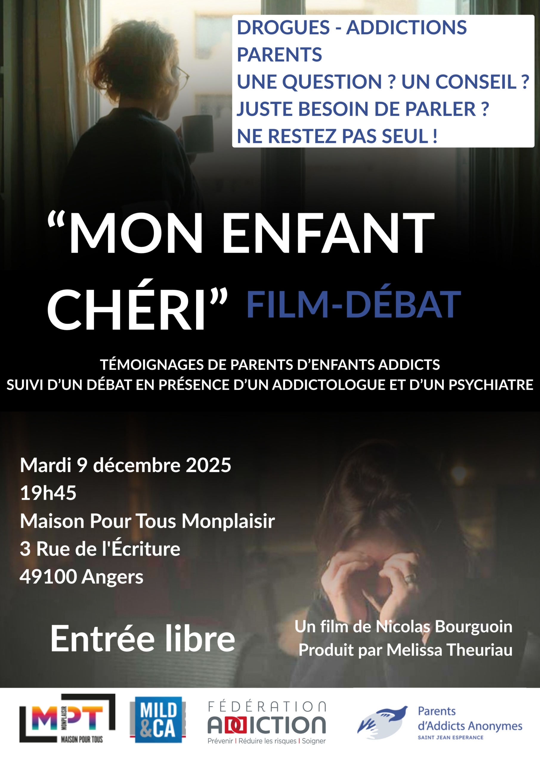 📅 Mardi 9 décembre 2025 à 19h45 📍 Maison Pour Tous Monplaisir – 3 rue de l’Écriture, Angers 👥 Ouvert aux parents, éducateurs, professionnels sociaux et de santé, élus